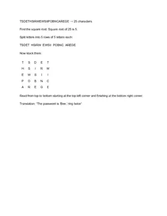 4Start from the top left letter and read down, then start at the top of the next column and read down again, and so on.[4] This example has the message: "GREAT JOB YOU GOT IT".