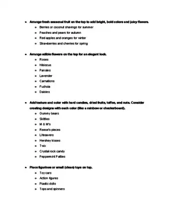 Decorating a cake is one of the most fun and unique parts of making a cake. If you're a beginner decorator, focus on simple techniques such as making simple designs on a frosted cake or topping it with decorations. For more experienced decorators, cover the cake with fondant and shape the material into interesting textures. Play around with cake decorating until you discover your favorite skills!