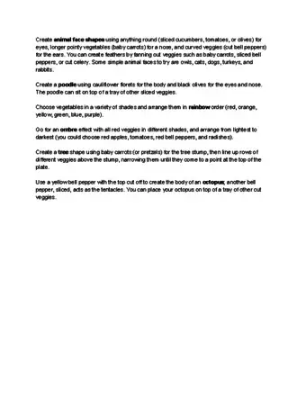 - When planning out your design, think about using as many differently colored veggies as you can, and try to separate the similar-colored ones (like cucumbers and green peppers) to make your design more visually appealing.