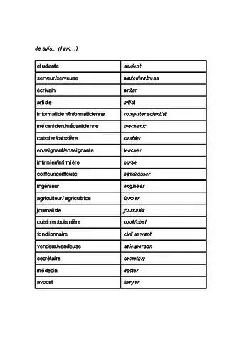- Many occupations have only one form, regardless of gender, such as "professeur" which means teacher.