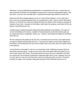 - For example, if you’re writing about an abandoned house like before, you may write, “I tried to peek through the windows, but the rotting boards blocked my view. I pushed open the door, and it swung open with the loud creak of rusty hinges. As I walked inside, my fingers ran over wallpaper peeling away from the drywall.” This way, details are conveyed throughout the paragraph without being overwhelming.