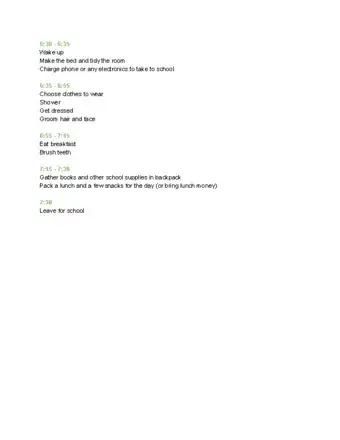 - For example, your list might tell you to take a shower at 6:00 and eat breakfast at 6:30.