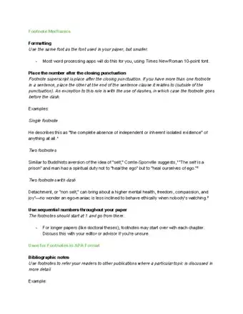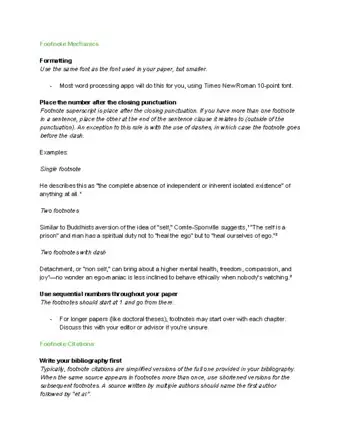 Tip: Keep your footnotes as brief as possible, especially with supplemental footnotes. Don't stray too far off topic or go into a tangent that is only marginally related to the topic of your paper.