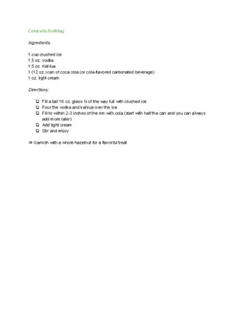 Kahlua is a tasty coffee liqueur that can be used as an ingredient to make many famous cocktails and popular drinks. Perhaps the most famous is the White Russian, which is made by mixing 1 ounce (45 mL) of Kahlua, 1 ounce of vodka, and 1 ounces of table cream over ice in a glass. Another well-known cocktail is the Mudslide. To make this, fill a shaker with ice, then add 1.5 ounces of Kahlua, 1.5 ounces of vodka, and 1.5 ounces of Irish cream liqueur. Shake well and then pour into an ice-filled glass. Other than mixed drinks, you can add Kahlua to make other sweet, alcoholic beverages. A few ounces of Kahlua can be added to hot chocolate or coffee to take them from everyday drinks to special treats. For more cocktail and shooter recipes featuring Kahlua, keep reading!