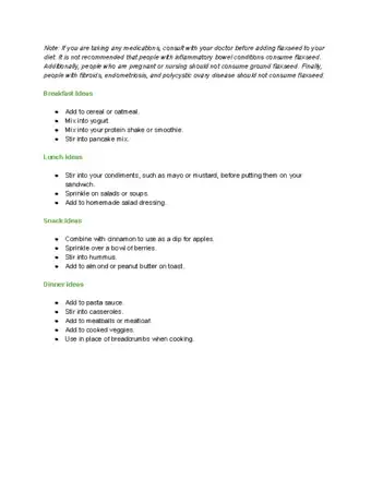Joseph_85Top AnswererIt can be the main part of the meal. There are recipes for hot flax cereal, flax pancakes, and other ideas online. -