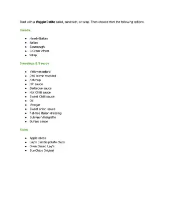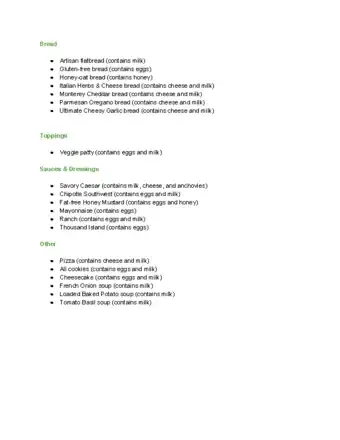 Lists of Vegan and Non-Vegan Foods at Subway