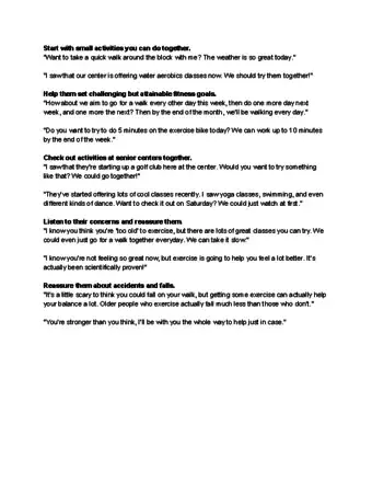 1Encourage daily physical activity and exercise.[6] Daily activity can strengthen a body and allow someone to move more independently. Even if a person has physical limitations, they should still get some level of physical activity every day. This can range from small movements or walking a few feet to a variety of exercises, including yoga and water exercise.