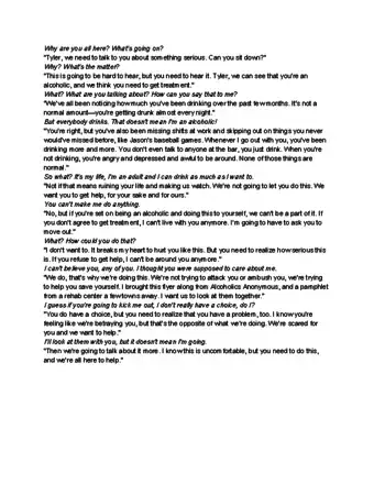 - Everyone will go around sharing their prepared statements. For instance, you might say, “I was scared out of my mind when the police called me last week. I think you should get help for your drinking...”