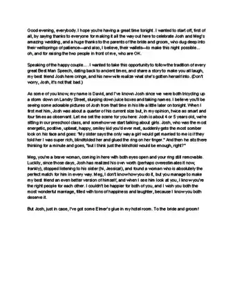 - Also note any times you have trouble speaking the lines. As the best man, you have to sound enthusiastic. Adjust your speaking style as well as your speech.