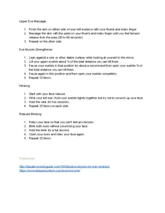 - Squeeze one eye shut for one second, then repeat 10 times, holding your lips to the side. Then do the other eye.
