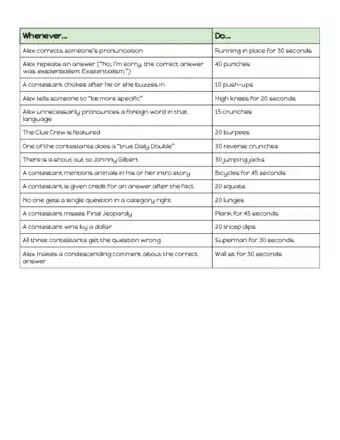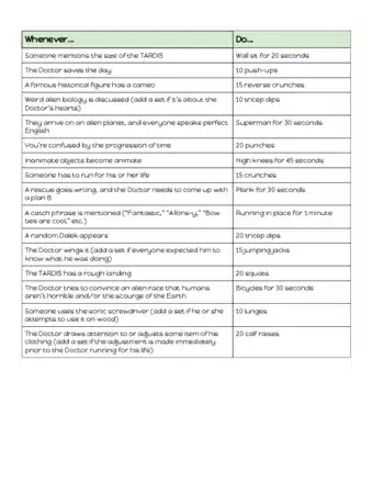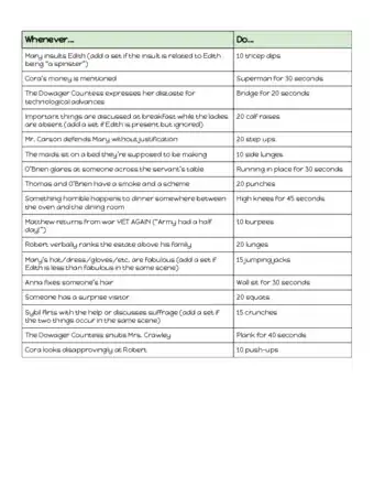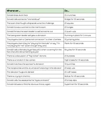 5Use exercise games. Exercise games involve specific TV shows and actions the viewer has to complete when specific dramatic events take place. For example, if you watch Game of Thrones, you could do twenty jumping jacks every time one of your favorite characters dies. That would be an exhausting workout! Sample workout games can be found at the end of this article.