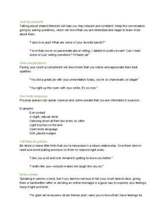 - Keep it short and sweet. You don't want to go too much into how much you like your crush or why, before you have your answer as to how they feel about you.