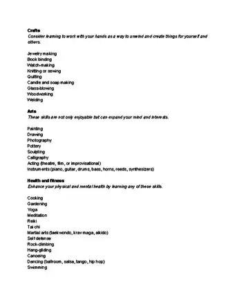 - For example, maybe you've always fancied yourself getting involved in archaeology, ballroom dancing, jewelry making, wilderness first aid, or hang-gliding.