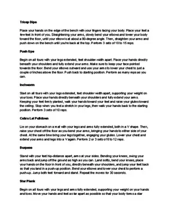 2Do traditional push-ups to engage your chest and upper body muscles. While these may seem difficult to do at first, doing push-ups is an easy way to increase your muscle endurance without needing any extra equipment. As you increase your reps overtime, the muscles in your chest and core will strengthen and firm, lifting your breasts.[19]
