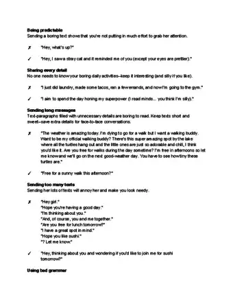 - If you let texting sessions drag on for too long, you will run out of interesting things to say and the conversation will quickly become awkward and boring.
