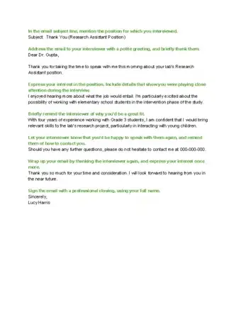 7Conclude your letter with your contact information and a final thank you. At the end of your thank you letter, let your interviewer know how they can reach you if they have additional questions. Then, thank them once more for their time and express your interest in an in-person interview.[9]