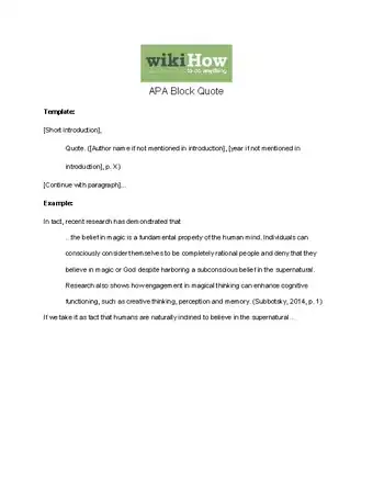Formatting a block quote may seem daunting, but it’s actually quite easy. How you format the block quote depends on which style you are using: Modern Language Association (MLA), American Psychology Association (APA), or Chicago Manual of Style (Chicago). All 3 styles format block quotes in similar ways, although there are slight differences between each one.