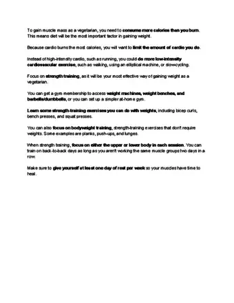 1Begin with the vegan guidelines for weight gain. The vegan and vegetarian diets are quite similar, though the vegetarian diet allows a little more flexibility. As such, a vegetarian should follow all the advice given for vegans attempting to gain weight, alongside suggestions that incorporate dairy into the diet.