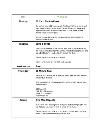 Community AnswerPractice running about 7 miles consistently at different speeds (sprint half a mile, jog half a mile, run a mile), mimicking the speed ups and slow downs you'd use over the course of a 90-minute soccer game. Running the field will be effortless if you do this consistently. -