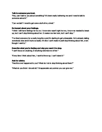 - While just talking about your feelings can help, you can also ask for advice. Ask them, “Have you ever felt like this? What did you do to stop thinking about someone?”