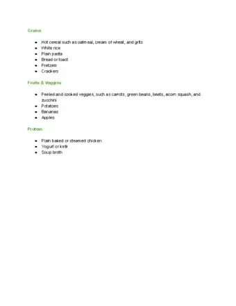 - Try the BRAT diet, containing bland foods like bananas, rice, applesauce, and toast. Other good options are crackers, noodles, and mashed potatoes.