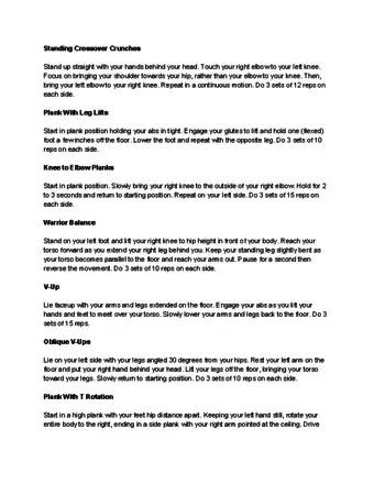 - 3 sets of 12 repetitions per side: bicycle crunches