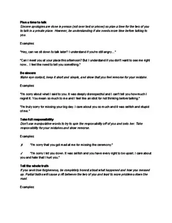 - If she had any unrelated complaints when you upset her, such as the fact that you’re always late to dates, make sure you acknowledge those as well.
