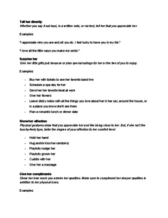 - Be specific. Don’t just tell her she’s the most amazing girl ever; refer to specific qualities that show you’re really paying attention to her.