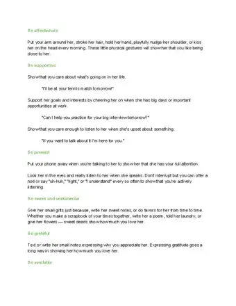 - You should pay attention to her and notice when she's wearing something new or when she got a new haircut. Say, "I love that new sweater on you. It really brings out your eyes," and she'll be impressed that you're paying attention.