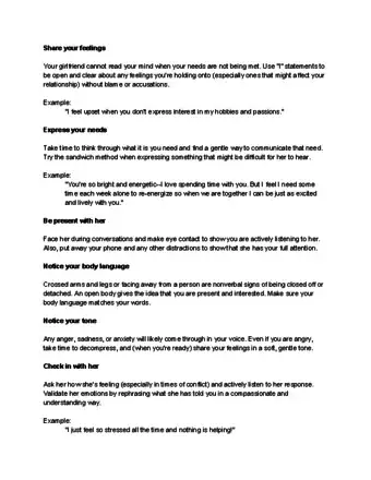 2Improve your communication. Many boyfriends are notoriously bad at communicating their needs. If you want to be a better boyfriend, then you have to work on being able to honestly but kindly tell your girlfriend what you're feeling, how to have a conversation without getting angry, and how to learn to compromise instead of being upset when you don't get what you want. If you develop stronger communication skills, your relationship will flourish.[7]