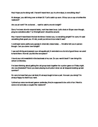 2Keep it simple. A better approach is the simplest message ever: “Hey you.” Most likely the girl will not have gotten your number so she will wonder who’s talking to her; this means she'll be likely to respond.