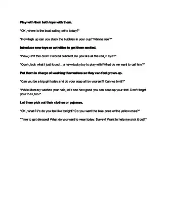 - Make bathtime special by playing games, telling stories, and singing songs together.