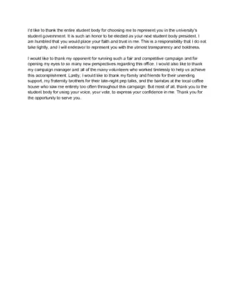 4Make eye contact. When you give an acceptance speech, you're addressing the audience, so you'll want to look at the audience for most of your speech just as you'd look at the person you're addressing if you were talking to only one person. It's OK to give the notes or the outline you have with you a quick look to keep your speech on-track. Try to limit this to short glances no longer than a few seconds or so long. The rest of the time, hold your head high and speak directly to the audience in front of you.
