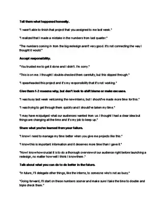 - This ultimately shows your boss that you understand the gravity of the situation, that you aren’t afraid of accountability, and that you want to work to move past problems rather than covering them up.