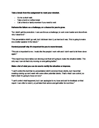 - If you’re feeling stuck or finding it difficult to move on after a failure, talk to a mentor or a professional counselor. They may have advice about how to cope.