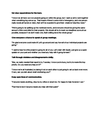 - Even if 1 member of the group is causing most of the problems, address the problems with their behavior and actions, rather than who they are as a person. For example, “Fred, we feel frustrated and our work suffers when you don’t hand in your reports on time.”