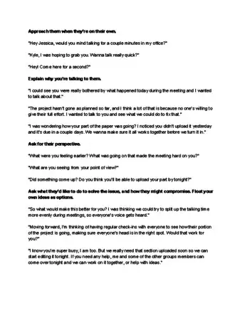 - If 1 member of the group has been causing problems, give them a chance to explain themselves. For example, "Susan, is something going on that's making it hard for you to arrive on time? Is there anything we can do to help?"
