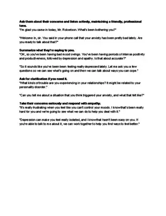 Validate the person's feelings by letting them know that it's okay if they're upset. Don't say things like, "Just get over it"—that tells the patient that they're not allowed to feel what they're feeling. The person may then be less likely to seek treatment, and they may be less likely to be open with you in the future about what they're feeling.
