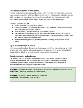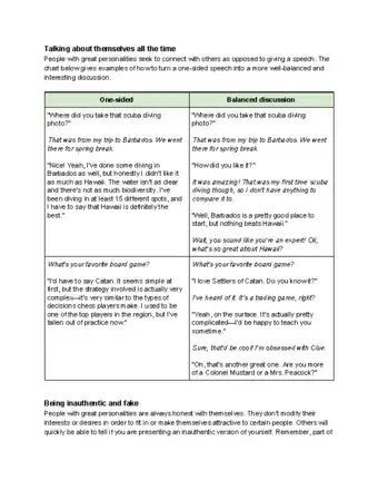 - For example, if you meet someone try to find out what makes them interesting. It doesn't have to be a constant stream of questions but balance talking about your own experiences with what they say. Maybe you really like mountain biking and you notice they have a mountain bike. Don't start talking about how good you are at mountain biking - ask them a lot about what they enjoy.