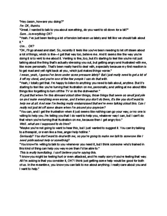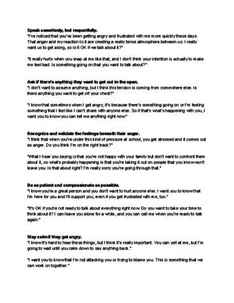- Say, "I've noticed you're angry a lot lately. It prevents us from connecting like we used to. It'd make me feel better if you talked to someone about it."