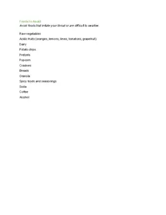 3Eliminate foods that scratch your throat until you feel better. Whatever you do, don't be too hard on your throat. Don't eat things like tortilla chips because this will make your throat feel horrible. Stick to broth, juice, and hot tea.