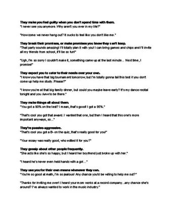 - Pay attention when you’re talking to them: do they cut you off or interrupt often? Do they disregard what you say and shift the topic to something else?