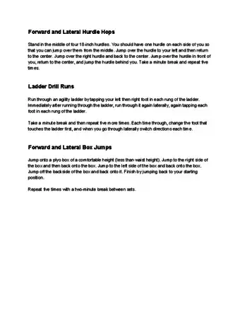 6Jump hurdle drills. Set up a 5-10 count row of 6 or 12 inch (15.2 or 30.5 cm) hurdles in a straight line. Starting beside the first hurdle, jump over it with your first leg, pausing for a few seconds before you drop your other leg to stand in between the first two hurdles. Jump back over the first hurdle, returning to start. After this, repeat the same lateral jump across block 1 and then block 2 before moving back to start. Follow the same pattern for all the blocks, jumping over all of the hurdles before returning to start. Repeat with your other side, turning around and leading with your opposite leg.