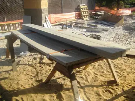 5Place the cement board sheets on a flat surface with sufficient supports to keep them from bowing, and keep them dry before installation.