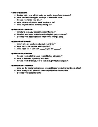 - If the celebrity responds poorly to something, maybe don’t ask them that same question. Also, if the celebrity gets really passionate about something in another interview, consider asking them similar questions.