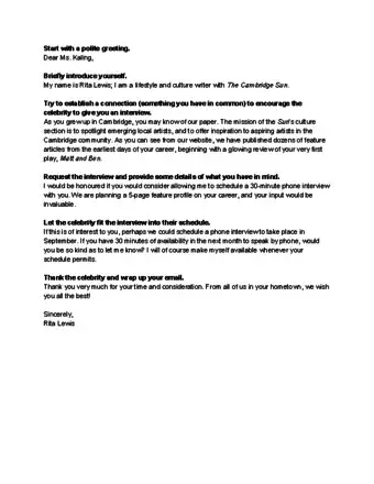 Don’t be intimidated to interview a celebrity. Remember, celebrities are people, too! Just ask them about their daily life, current projects, future plans, and interests and hobbies. By reaching out to the celebrity, preparing questions, and having a genuine conversation with the celebrity, you can have a great celebrity interview!