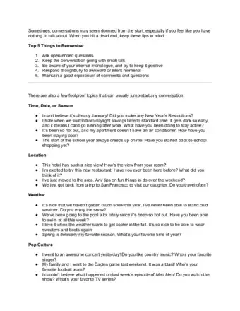 - You may tell a little bit of your background in order to engage conversation and share about yourself. Telling someone where you work or that you love rock climbing is appropriate and may lead to more conversation topics.