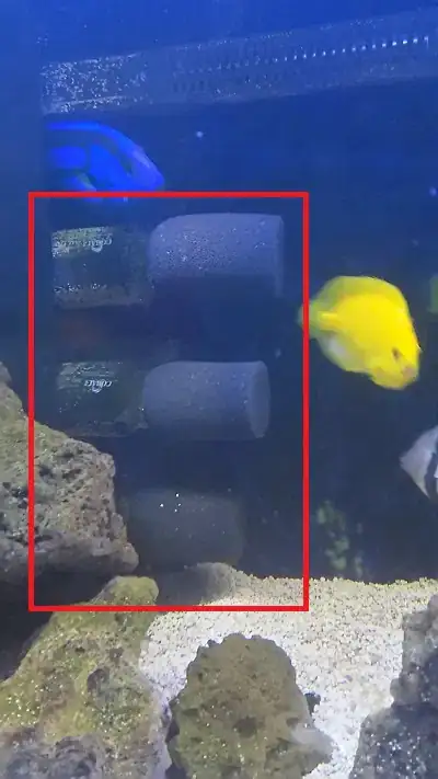 - Mechanical filtration from in-aquarium powerheads with sponges can be hidden behind rocks.