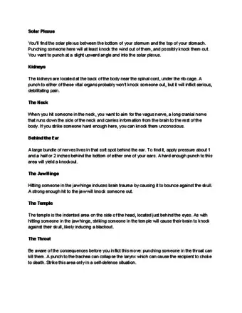 • Sideswipe. This is where you target the jaw with your fist by coming from the side. You want the recipient's head to snap to the side, causing a blackout.