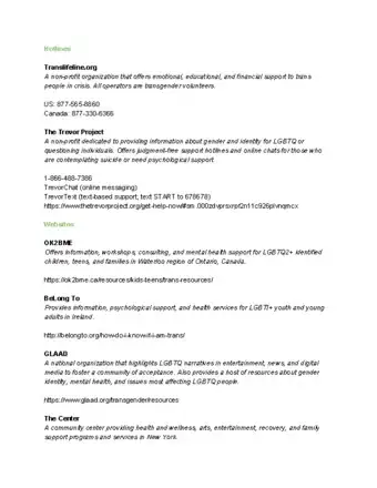 - Look for counselors who specialize in gender identity, gender dysphoria, or LGBT concerns.
